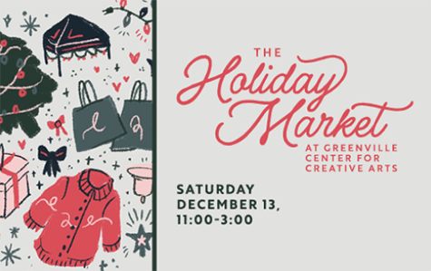 Greenville Center for Creative Arts Join us for a Holiday Market featuring local artists, businesses, delicious food, and festive decoration! This event is free and open to all ages. Apply to be a vendor below! Art Vendor: https://forms.gle/5grUQXfHoHwBYMh37 Non-Art Vendor: https://forms.gle/AABoNJyASvnwTKip9