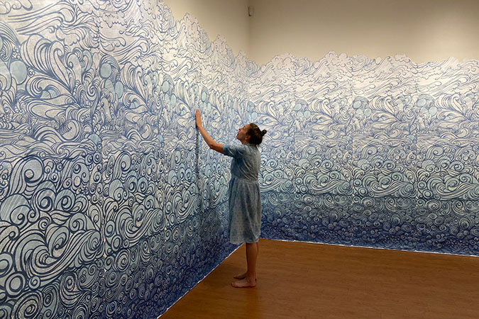 Melissa Haviland’s The Flood draws on the long history of “bluing,” a process in which blue dyes were added to paper and textiles to counteract yellowing which improved perceived quality of the material. From 15th-century European paper made from worn rags to the more modern blue-tinted laundry brighteners, bluing has long suggested improvement, and value—even…