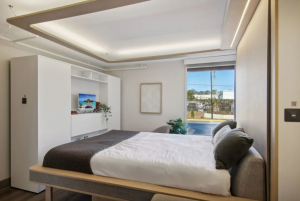 Flathouse Studios is the first community in South Carolina to offer Ori Expandable Apartments. Expandable Apartments are dynamic spaces — walls move, and rooms appear and disappear on command, so residents get much more living space. In addition, the site features a seasonal outdoor swimming pool with deck chairs, an onsite podcast studio, a coworking space, a deluxe, state-of-the-art fitness center with high-end equipment, and a game room.
