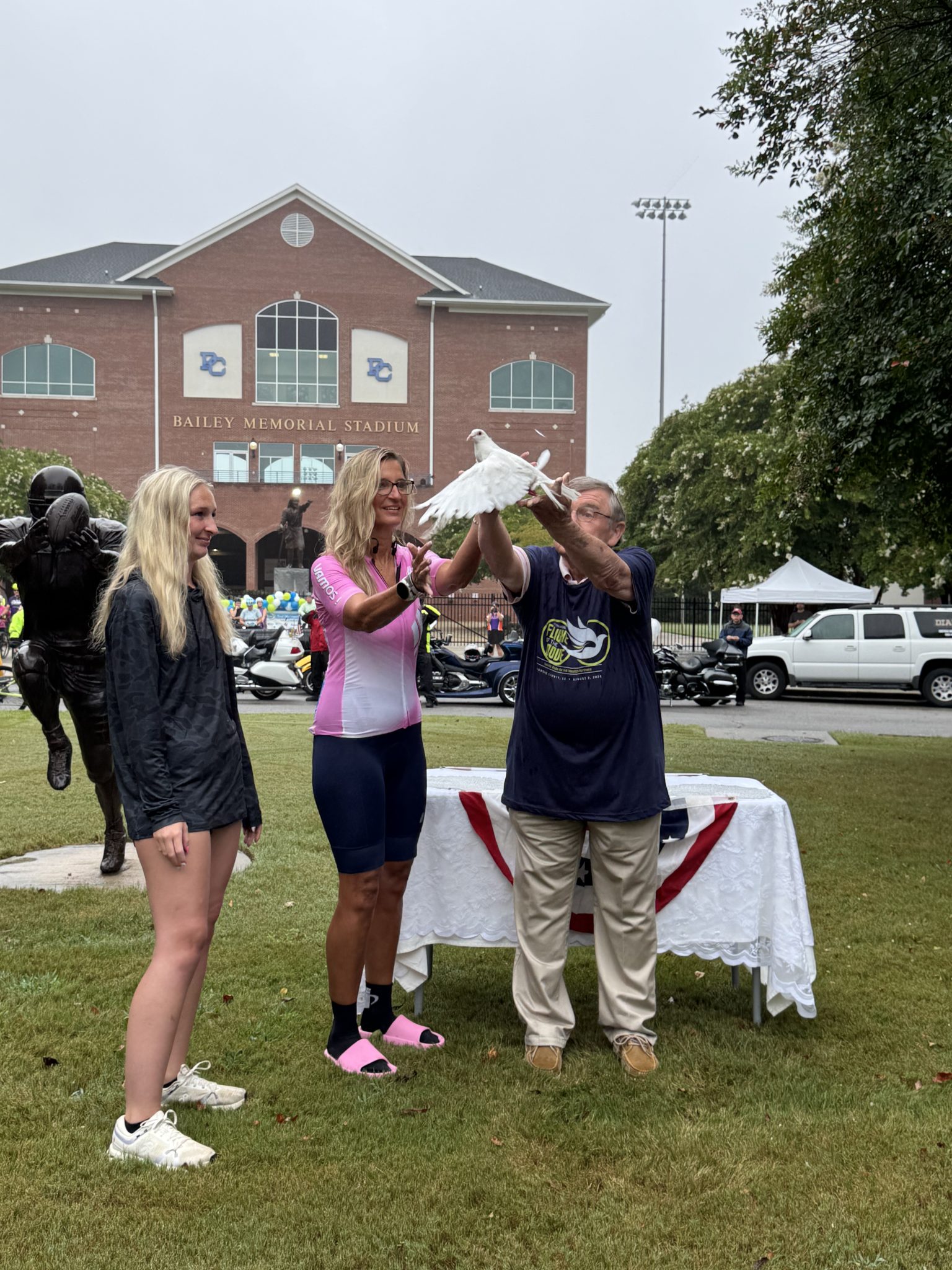 Celebrating two decades of impact, Flight of the Dove has grown into a tradition in Laurens County. Riders were offered multiple route options—14, 30, 50, and 62 miles—as well as a 50-mile “challenge” course with added elevation. Along the way, they enjoyed rest stops staffed by encouraging volunteers, safety support from local crews, and a post-ride celebration with food, music, and fellowship at Presbyterian College’s Bailey Memorial Stadium.
