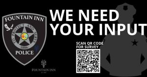 The survey is brief, voluntary, and open to anyone who lives, works, or spends time in Fountain Inn. Responses will be used to support the accreditation review and to guide future improvements in policing services.