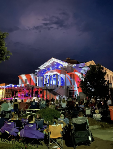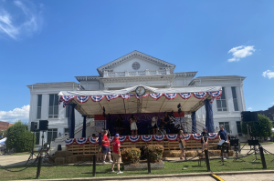 Following the parade, members of the community settled in for an evening of patriotic music. Food vendors filled the Square and the rain held off. Â After dark the crowd enjoyed more music with the light projection show which showcased the beauty of the historic courthouse.
