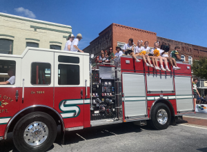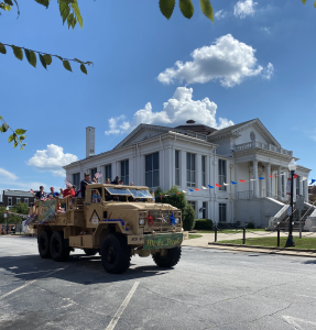 Sunday afternoon a parade with entries from across the County made the way down Main Street in Laurens and ended on the Public Square. Grandparents, parents and children of all ages lined the streets, waving flags as the parade went by. Presbyterian College President Matt vandenBerg, served as Grand Marshal of the parade.