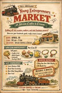 “We are super excited for our first-ever Young Entrepreneur Market,” the Steam Coffee team shared. “Please come out and support these young kids!”