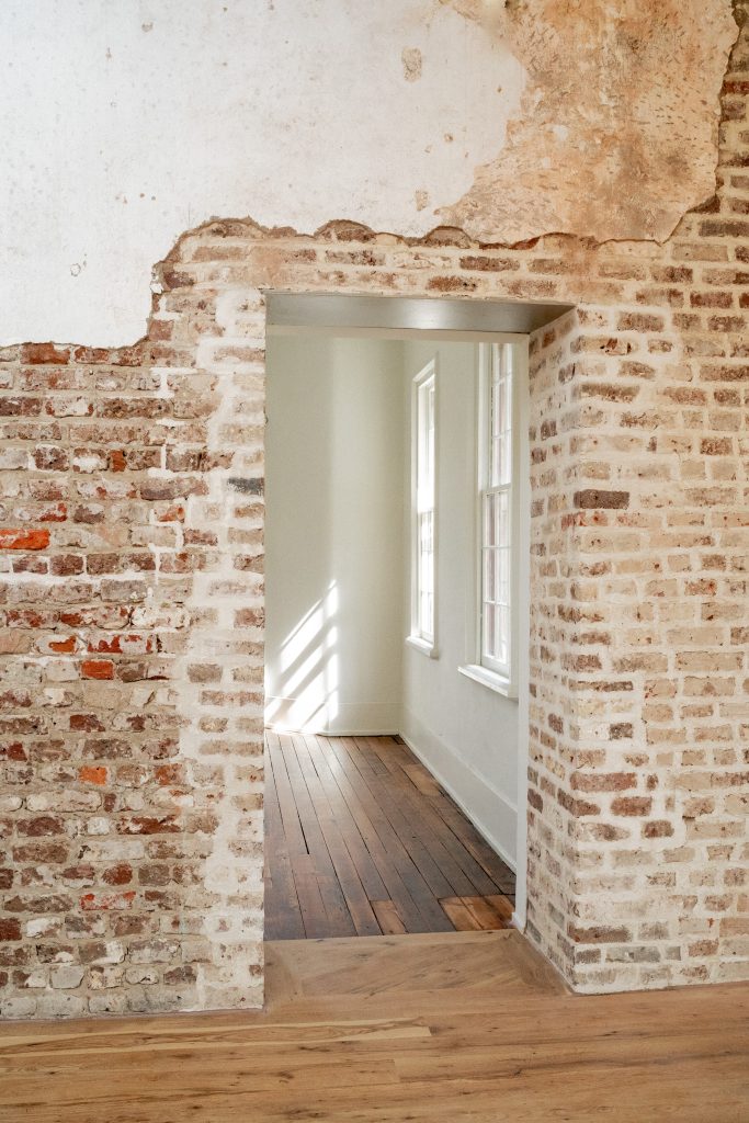 With a team dedicated to upholding the building’s historic character, the renovation of the Old Charleston Jail, and its unparalleled new event venue, Twenty-One Magazine embodies the Lowcountry spirit. Landmark Enterprises selected award-winning architect Jay White of Liollio Architecture and hospitality events interior designer Ash World to reimagine every detail of the space. Together, the teams thoughtfully restored the building and exterior grounds to meet the highest standards of the hospitality industry for the mixed-used concept, from expansive outdoor spaces adorned with original live oaks and bluestone patios to versatile event rooms and ballrooms featuring exposed brick, soaring ceilings, and abundant natural light, Twenty-One Magazine merges historic details with modern utility. A newly added egress stair and elevator at the rear of the building improve accessibility and flow, ensuring seamless movement throughout the space while enhancing its functionality for various events and gatherings. The design ethos extends to the renovated offices of the Old Charleston Jail, located on the second floor of the building.