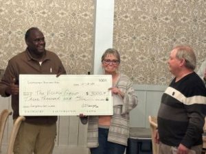 Ray Funnye with The Village Group accepts a check from GBA Treasurer Deb Smith and President Greg Metcalfe.