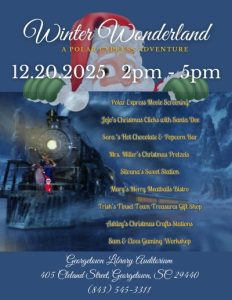 December 16, 2025The Georgetown County Public Library will host its final program for children this calendar year on Saturday, December 20 from 2:00 – 5:00 pm at the 405 Cleland Street in the auditorium.
