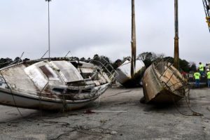 The effort — a partnership between Georgetown County, the S.C. Department of Natural Resources (SCDNR), state legislators, and the nonprofit Wounded Nature – Working Veterans — has removed more than 20 vessels from the harbor since work began last summer. Divers from SCDNR returned to the Georgetown Port today to finish hauling out the remaining wrecks. The boats were deposited on the site of the county-owned Georgetown port, where staff with the County’s Public Services Department will remove them to the landfill.