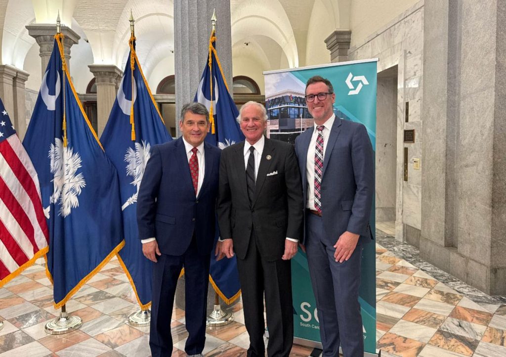 Pictured (left to right): William “Bill” Kirkland, SCRA interim president and CEO, Governor Henry McMaster, Brian Shea, co-founder and principal at Simon Everett, Ltd.