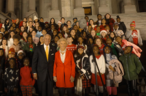 Photo credit: Governor Henry McMaster Facebook Page – Governor’s Carolighting 2024 with Governor Henry McMaster and First Lady Peggy McMaster at the Statehouse in Columbia, SC.