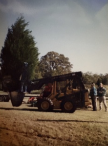 In the mid-1990s, Marcus Cook Farms and Garden Center joined the Gray Court Christmas Parade with something more memorable than a traditional float. Riding with their New Holland skid loader and tree spade, they carried a 14-foot Cryptomeria Japonica tree destined to become the town’s new Christmas tree. Mayor Bobby Carter had asked the farm to help replace the previous tree, which had been removed to make way for a new sidewalk. When the parade ended, the Cook team planted the tree in its current, highly visible location.