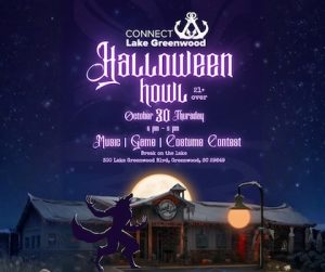 October 7, 2025Get ready for a frightfully fun night on the water! Connect Lake Greenwood is hosting a Halloween Howl on Thursday, October 30, from 6:00 to 9:00 p.m. at Break on the Lake, located at 300 Lake Greenwood Blvd.