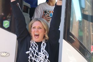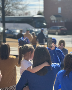 As the triumphant team returned home, a jubilant crowd gathered on Monday afternoon to extend a warm welcome. The enthusiastic group, displaying unwavering support, eagerly awaited the arrival of the champions. The atmosphere was electric as the team bus pulled in, accompanied by a police and fire truck escort, adding to the celebration. The community’s spirit and pride were palpable, reflecting the collective joy of witnessing their team make history.
