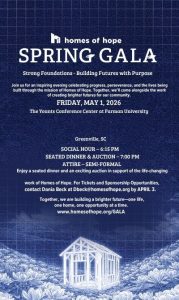 Homes of Hope is a nonprofit organization based in Greenville, SC, dedicated to providing affordable housing solutions and economic mobility opportunities to individuals and families in need. Since its founding in 1998, Homes of Hope has built 745 homes and graduated 343 men from the Men’s Workforce Development program, offering hope and a brighter future to the Greenville community. To learn more, please visit us at www.homesofhope.org.