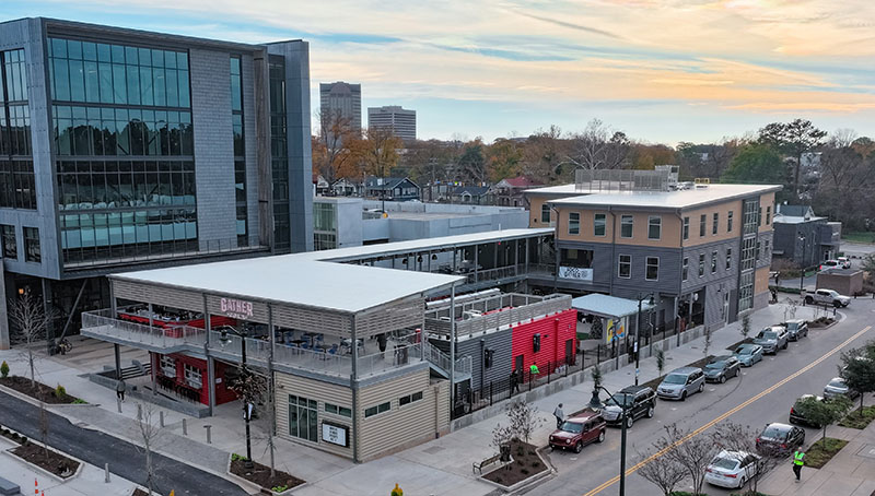 On December 5th, Hood Construction and Garvin Design Group joined Cason Development Group, Four Oaks Property Group, and Hughes Development for the grand opening of Gather COLA. Located at the corner of Freed and Sabal Streets, Gather COLA is The BullStreet District’s newest food hall and community hub.