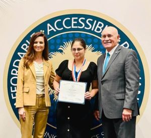 (L-r): Dr. Lori Heafner, vice president for academic affairs at HGTC; Tiamarie Rangel, HGTC Phi Theta Kappa All-State Academic Team honoree; and Dr. Tim Hardee, president of the SC Technical College System, during the recognition ceremony April 9 in Columbia, SC.