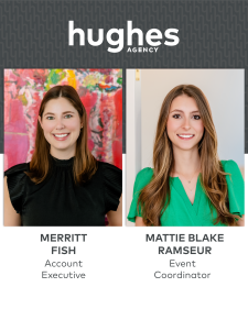November 20, 2025Hughes Agency, a leading full-service public relations, marketing, advertising and event management firm, welcomed Merritt Fish as Account Executive and Mattie Blake Ramseur as Event Coordinator.