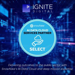 September 30, 2025CHARLESTON, SC – Ignite Digital, a digital transformation partner supporting the national security sector, was named a Snowflake Select Tier AI Data Cloud Services Partner—one of the first public sector companies to do so. As a select tier partner, Ignite Digital leverages Snowflake’s world-class AI Data Cloud through the lens of deep mission expertise to create intelligent data solutions for national security clients.