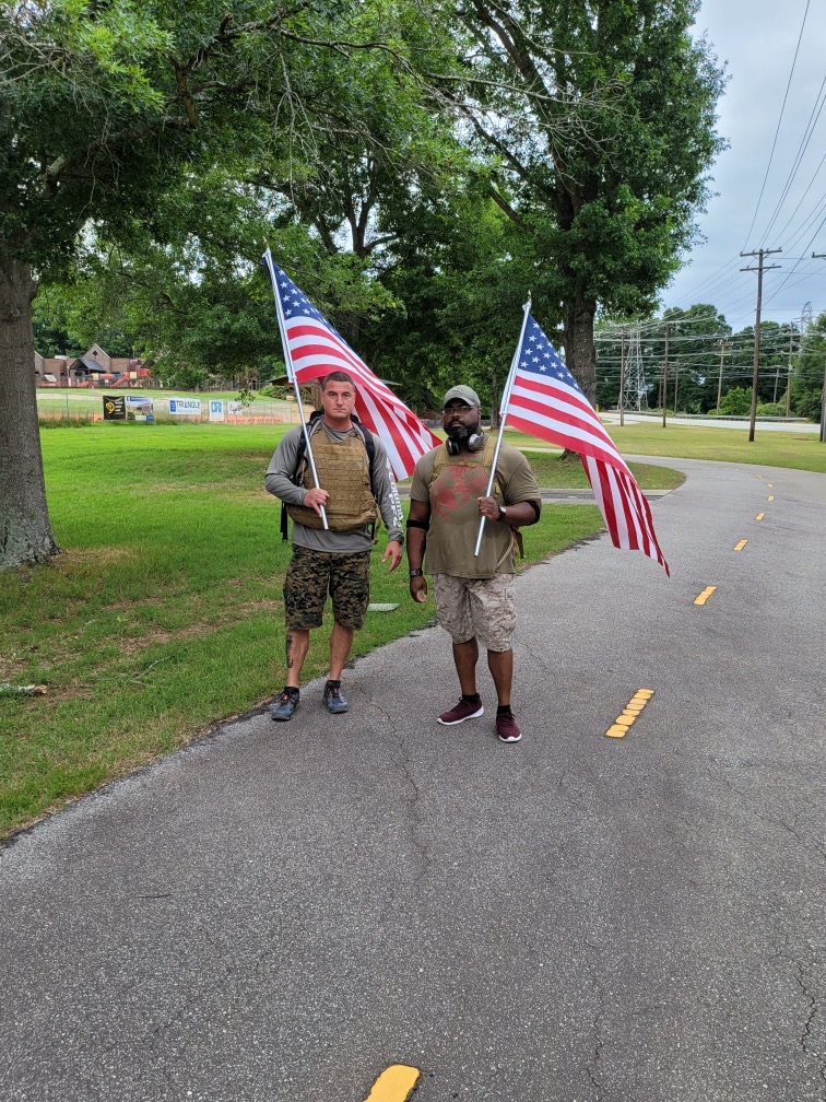 Greenville County Deputy Daniel Baker (left) hikes with a fellow Marine veteran on Memorial Day 2021