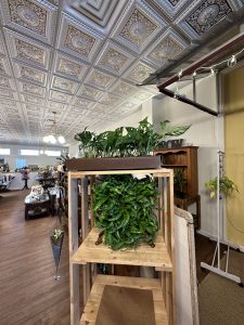 The plants are purchased wholesale from Tropical Paradise of South Carolina. The most popular plant is super easy to grow Hurricane Birdnest Fern. By far the most popular item, Spry has reordered three times since the store opened.