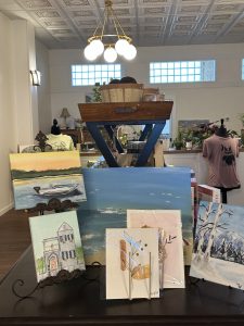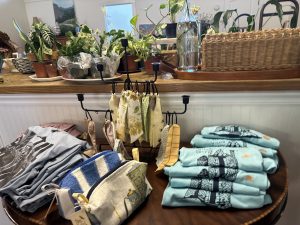 are in the store. Their daughter, Maggie, is the Mustard Magpie – she is the youngest artist, she does graphic t-shirts as well as sews hair ties and cosmetic bags. Their daughter-in-law, Brooke, also has graphic t-shirts in the store as well as stickers