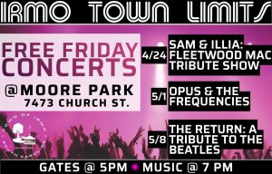 April 16, 2026The Irmo Town Limits Free Concert Series is coming to Moore Park! Join us for three Friday nights of live music, community spirit, and local eats.