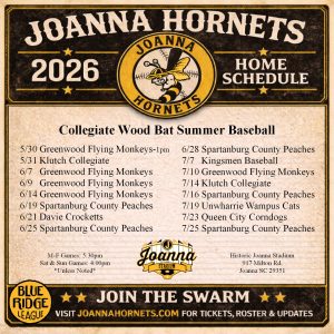 The Joanna Hornets have released their 2026 home game schedule, marking a major milestone in the return of collegiate summer baseball to historic Historic Joanna Stadium.