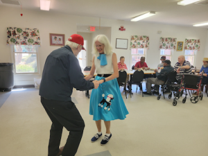 Dressed in colorful poodle skirts, the ladies set the tone for a nostalgic afternoon as a DJ filled the room with classic hits from the 1950s. Residents enjoyed an ice cream social, laughter, and plenty of opportunities to join in the fun.