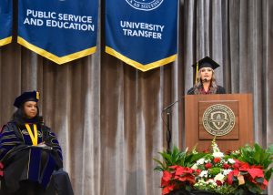 PTC officials conferred diplomas and other credentials on an estimated 180 summer graduates on Dec. 13, 2022. In addition to Latimore, two students also addressed graduates. Cardiovascular Technology major Madalyn Harris spoke at the morning ceremony, and Human Services major Thomas Thompson spoke at the afternoon ceremony.