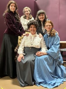 Cast 1 (pictured in cover photo)will take the stage the first weekend, featuring Dani Trent as Jo, Lizzie Davidson as Amy, Tricia Nolan as Marmee, Kate Howard as Meg, and Gemma Gearheart as Beth. Cast 2 will take the stage the second weekend featuring Lizzy Sparks as Amy and Tricia Nolan as Marmee, Eleanor Allen as Meg, Lilly Butler as Jo, and Gemma Gearheart as Beth.
