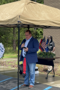 In his opening remarks, Morris Madden, Chairman of the LCHOH, expressed deep gratitude to those who took time out of their holiday weekend to attend the first Memorial Day ceremony organized by the Laurens County Hall of Heroes. In his remarks, Madden reminded everyone of the day’s somber significance, stating, “Memorial Day is a somber National Day of Mourning. We are all gathered here today to pay tribute to the brave Laurens County military warriors, and to all the men and women of all branches of the United States Military, who gave the ultimate sacrifice to help preserve and defend our nation’s freedoms and liberties. It is often said that every US serviceman and woman gave some. But today, we honor and remember those who gave all, those who truly gave their full measure of devotion.”