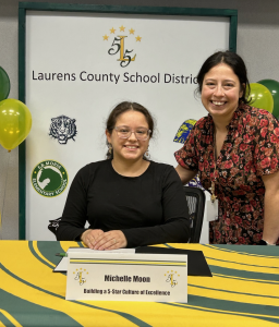 Michelle Moon earned her Bachelor of Science in Elementary Education from Lander University in December 2024. She is certified in the Department of Health and Environmental Control (DHEC) Action for A Cleaner Tomorrow environmental education program and the SciStarter Citizen Science program. Moon has over 750 hours of classroom experience and impressive skills in the use of technology. In early 2024, she earned teaching experience at Waterloo Elementary School (WES) under Fourth-Grade Teacher Lisa Nelson and later served as a student teacher in Victoria Jordan’s third-grade class at GCO. Jordan was overjoyed to witness Moon sign her LCSD 55 Letter of Intent.