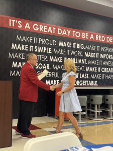 Addison also highlighted how education has evolved during her years in the classroom—from overhead projectors to smart TVs, from paper gradebooks to online portals, and from paper handouts to fully digital classrooms. She acknowledged the unique challenges today’s students face.