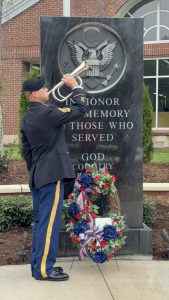 Command Sergeant Major Doug Gilliam, a retired Army veteran and current State Representative for House District 42, delivered the keynote address, reflecting on his 26 years of military service, which included combat in Afghanistan and peacekeeping in Kosovo. “A veteran is a special breed of warrior,” Gilliam shared. “They are selfless, hard-working, and willing to lay down their lives to protect our nation. To me, every veteran is a true hero.”