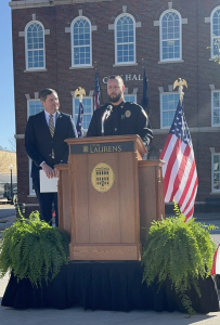March 19, 2024Laurens Mayor Nathan Senn addressed the press on Tuesday morning to unveil a significant decision for the Laurens Police Department. Mayor Senn announced the promotion of Captain Heath Copeland to the esteemed position of Chief of Police. This announcement came in light of the resignation of former Chief Keith Grounsell, effective March 6, 2024.