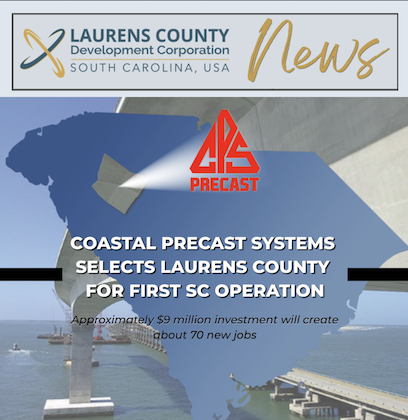 Approximately $9 million investment will create about 70 new jobs FAST FACTS Coastal Precast Systems, LLC (Coastal Precast Systems) selects…