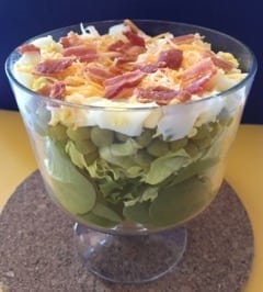 Rows and layers of fresh garden produce with a touch of crispy bacon on top makes this salad irresistible.