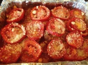 - Sprinkle tomatoes generously with grated cheese.