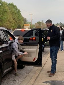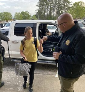 On Friday Laurens County Sheriff, Don Reynolds and Deputies were on the scene at county schools (Joanna, Ford, Hickory Tavern, Gray Court, Ware Shoals, Waterloo, LDHS, and Laurens Academy) to build relationships with the children through a smile and a fist bump.
