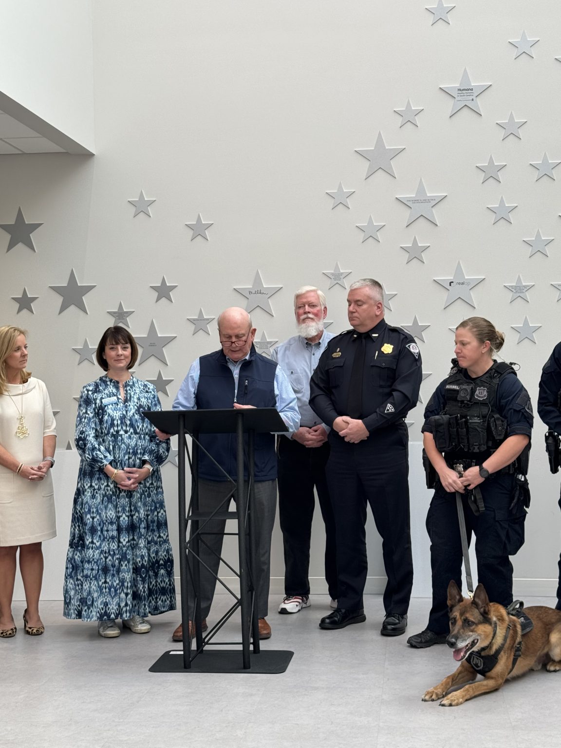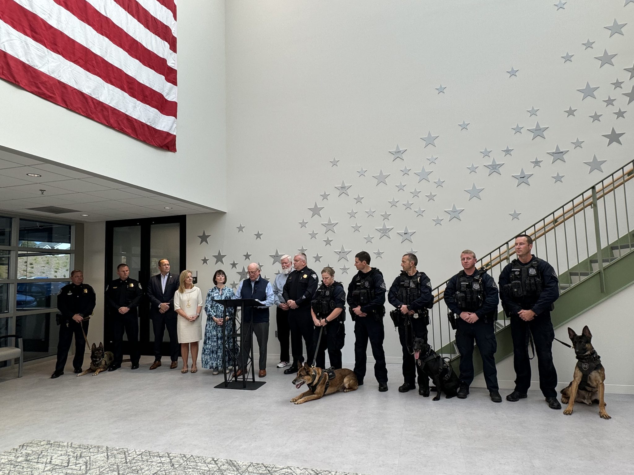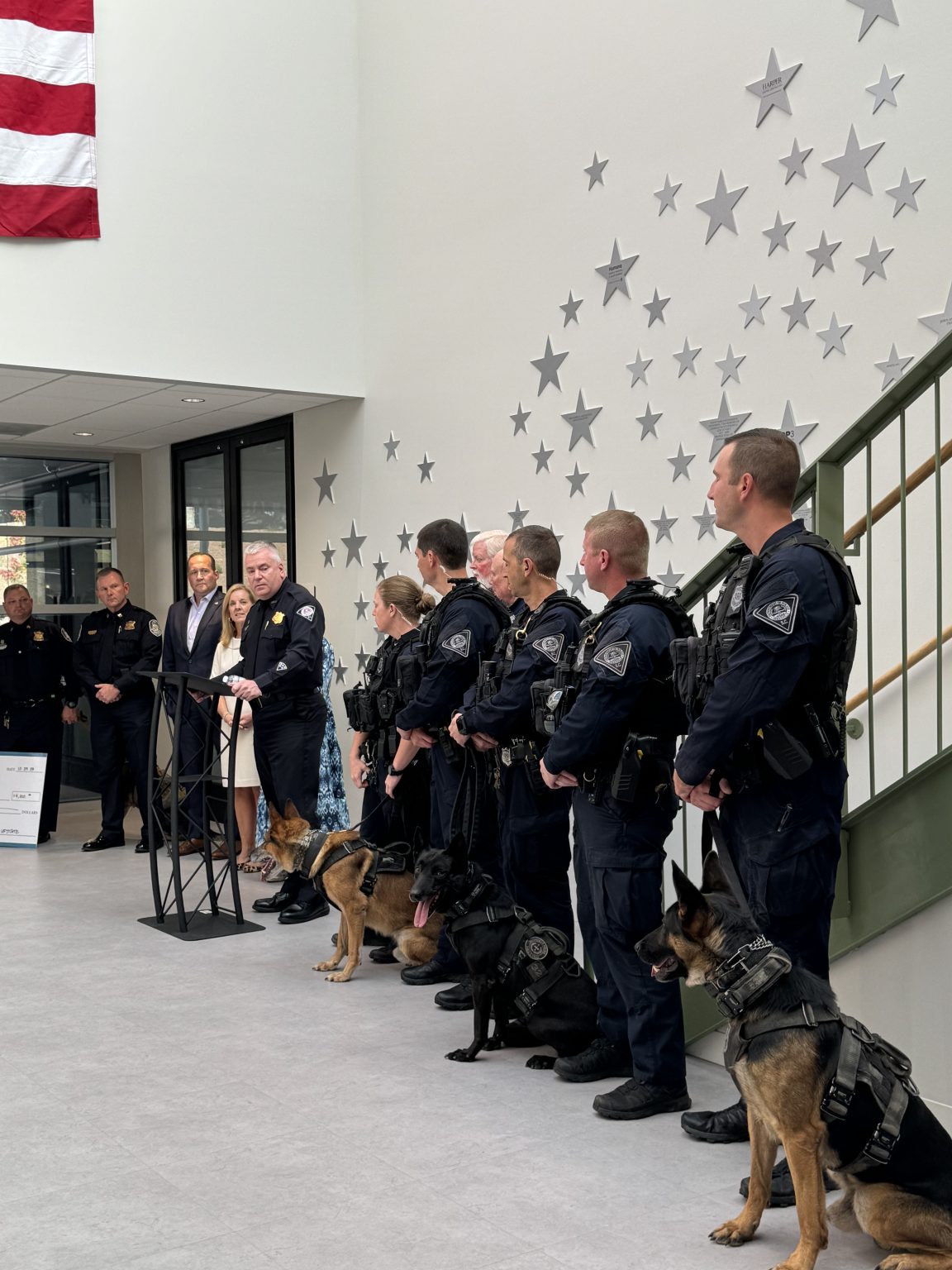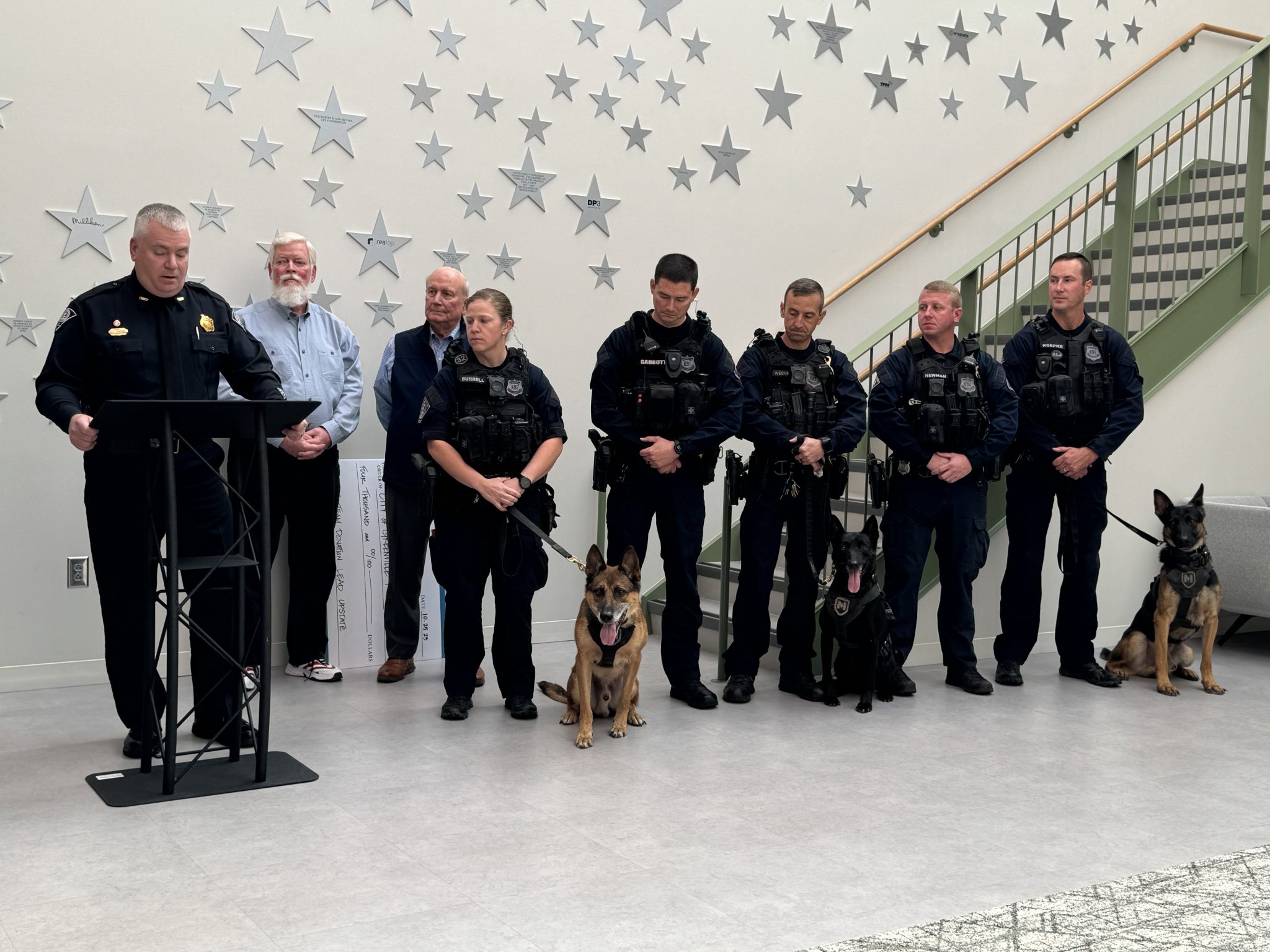 Chief Howie Thompson of the City of Greenville and Captain Clardy of the Mauldin Police Department were present at the press conference to receive the funds on behalf of their respective departments. Both organizations had members of their K-9 teams in attendance, underscoring the significance of these contributions in ensuring the continued success of these essential law enforcement programs.
