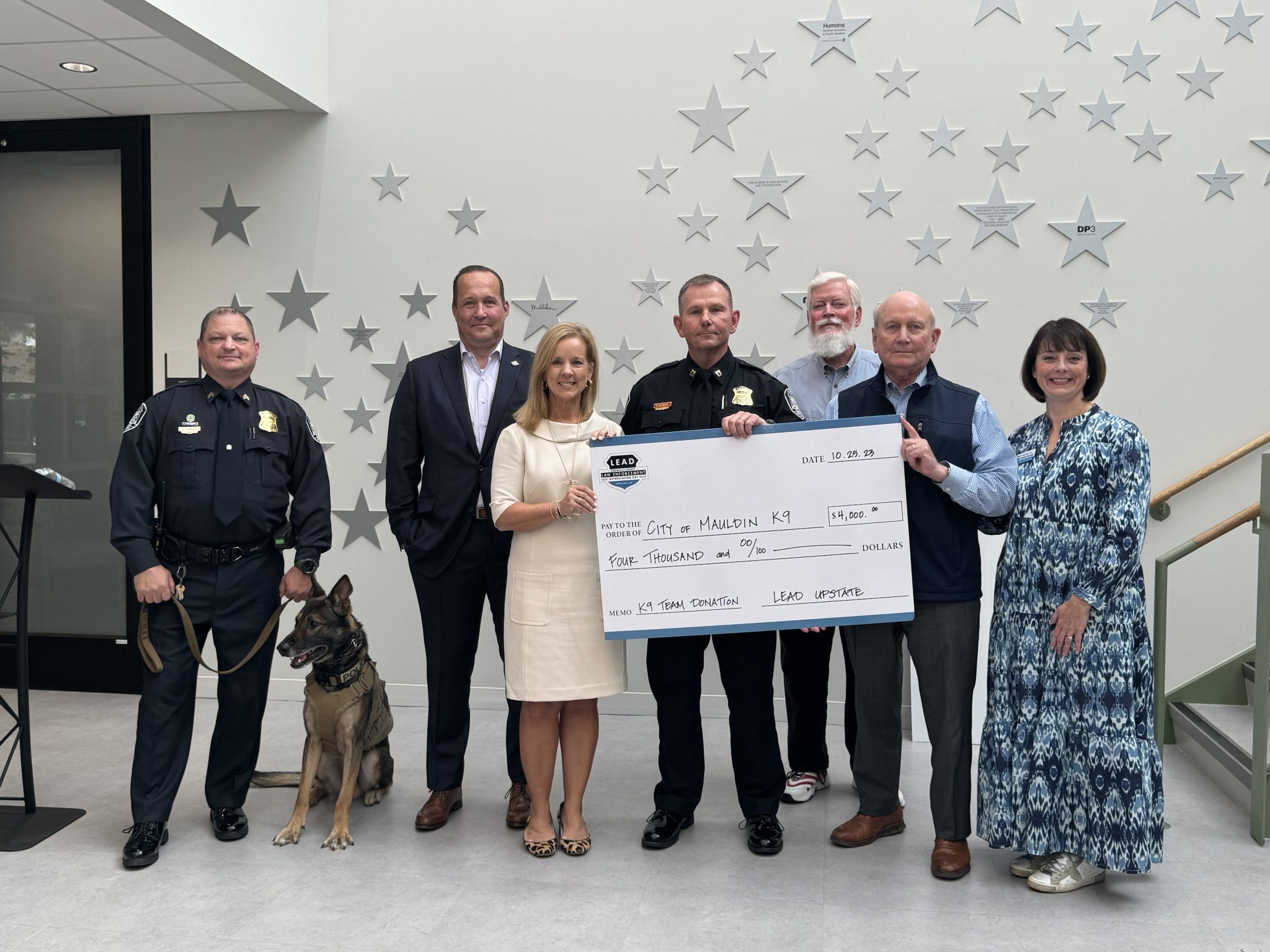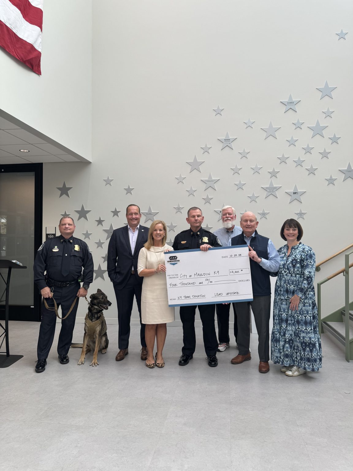 November 2, 2023On Wednesday, October 25th, LEAD Upstate, a community organization dedicated to supporting law enforcement personnel in Greenville County, marked the conclusion of its 9th year of heartfelt appreciation and support. Their mission culminated in a press conference at the Upstate Warrior Solution Building, where they presented a generous financial contribution of $4,000 to both the Greenville Police Department K9 Team and the Mauldin Police Department K9 Team. These contributions reflect the LEAD Upstate’s commitment to recognizing the invaluable work of K9 teams in safeguarding the community.