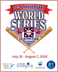 Lexington County will be the host for the 70th Anniversary Diamond Youth Baseball (DYB) Division I & II World Series (AAA/MAJORS/”O” ZONE) from Thursday, July 31st to Wednesday, August 6th. Play will occur at the Lexington Sports Complex for Division I youth and at the Midland Sports Complex for Division II youth.
