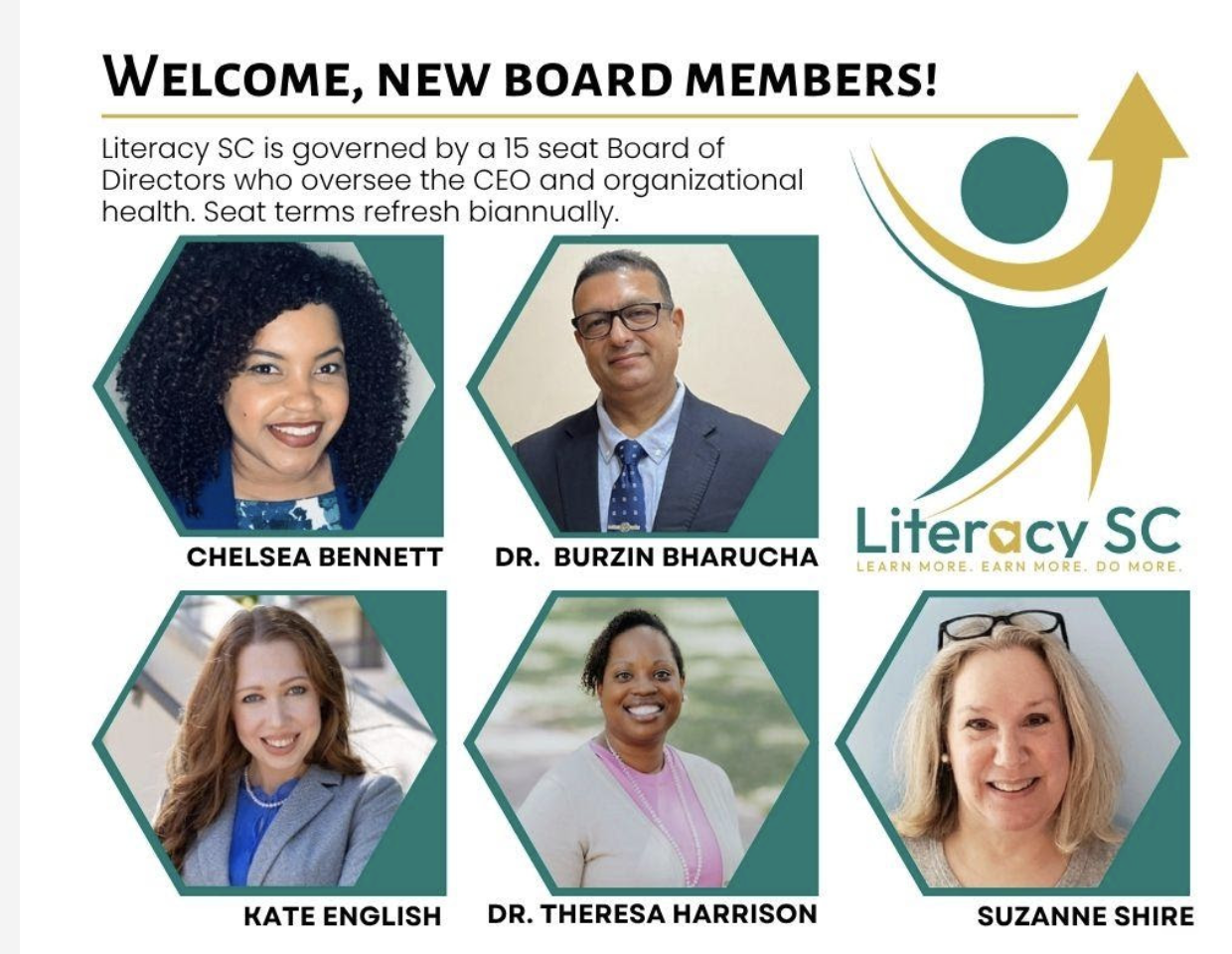 Literacy SC welcomed five new members to its Board of Directors this spring, bringing fresh energy and a wider range of expertise at a time of rapid organizational growth. With 15 total seats, this nonprofit board supports a mission focused on expanding access to adult and family literacy help across central South Carolina.
