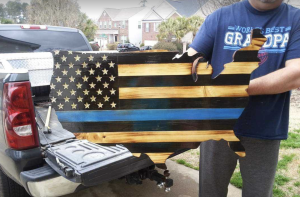 “I have enjoyed woodworking for as long as I can remember,” Folk shared. “My grandfather and father were both woodworkers, so it’s in my blood. Being a retired law enforcement officer with a love for my country, building flags just made sense.”