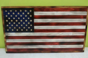 November 6, 2024Robert Folk, a Kinards resident and self-taught woodworker, has been crafting wooden flags since 2015. His journey into woodworking began with creating raised dog bowls and various items for his wife Tammy’s grooming shop, but it was the desire to try something new that led him to focus on patriotic flags.