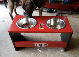 In addition to the wooden flags, Folk creates bird feeders, cutting boards, raised dog bowls, and even furniture. Though much of his work is sold through word of mouth, Folk has gained a following on Facebook under the name Old Rustic Relics, where customers can view and request his creations. His wife Tammy helps manage orders through their Facebook page, and he also takes custom requests via phone.