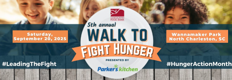 Lowcountry Food Bank’s 5th Annual Walk to Fight Hunger is happening on Saturday, September 20th! The Walk is a family-friendly event that aims to bring awareness to hunger issues in coastal South Carolina and raise funds for Lowcountry Food Bank programs, including Senior Meals, Childhood Hunger programs, and fresh produce options for the community.