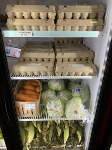 Fresh milk will be available starting Thursday morning, and the store has a great selection of frozen meats and shelf-stable items. The cooler is also filled with produce to help restock pantries.