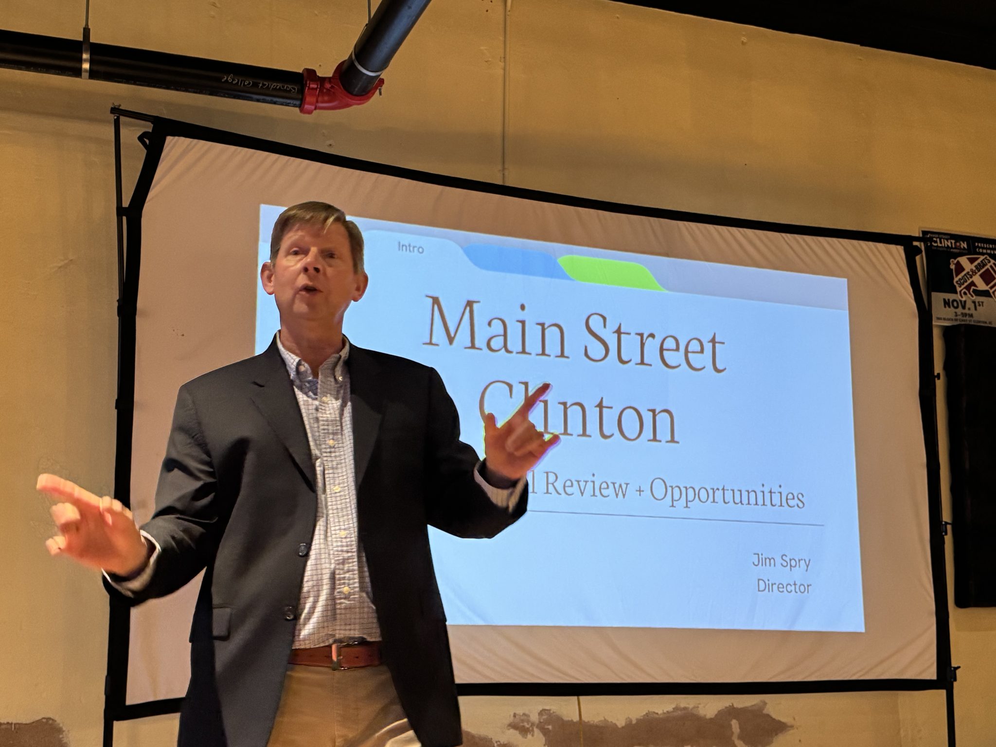 Spry noted that economic development remains the primary engine of revitalization and that Main Street Clinton has already played a pivotal role in the establishment or survival of roughly one-third of the businesses currently operating in the downtown area north of the tracks.