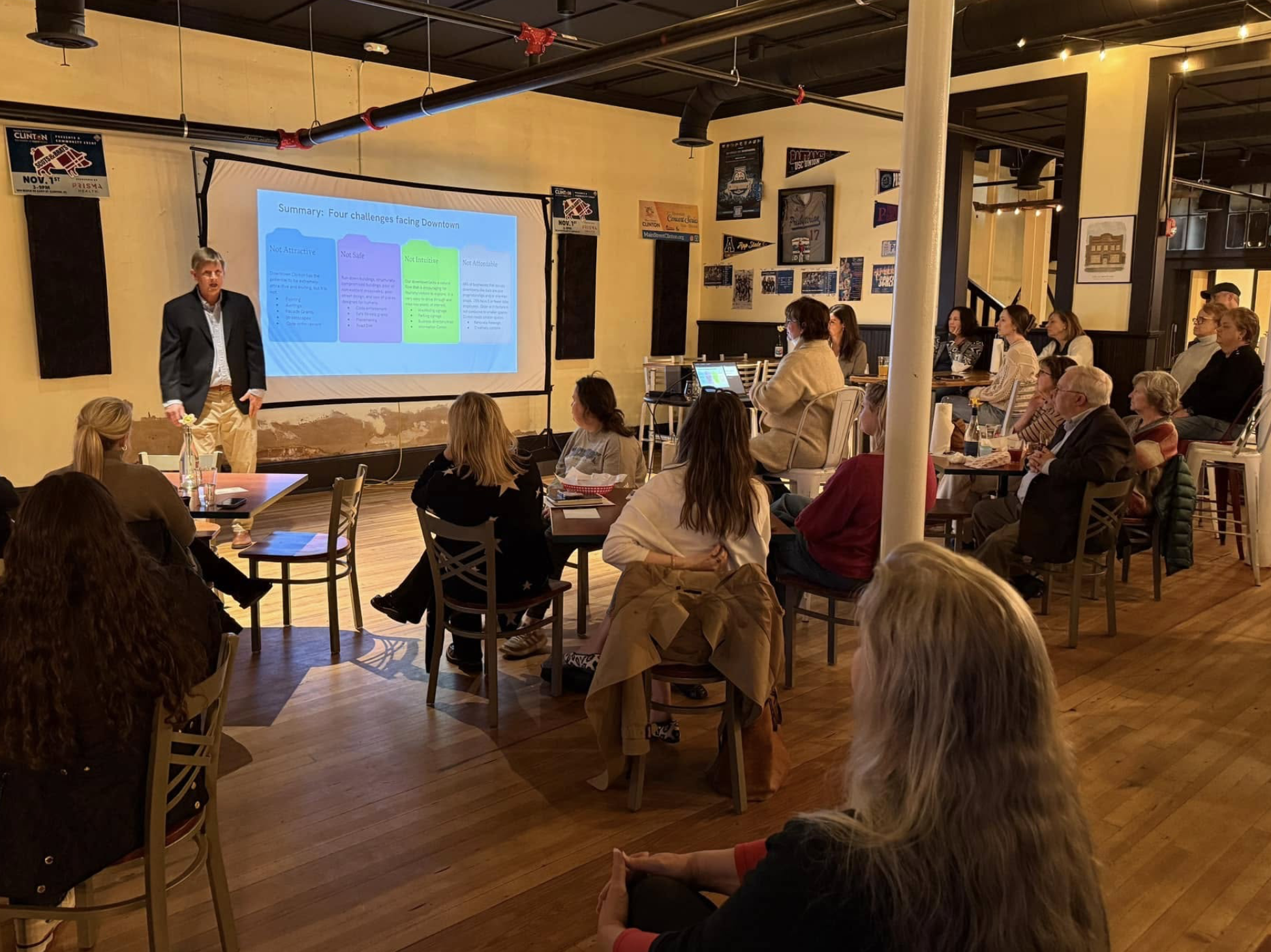 The evening underscored that Clinton has already demonstrated remarkable resilience — most notably in the community’s recovery following the devastating fire on Musgrove Street. Leaders emphasized that the issues facing downtown today are not insurmountable problems but challenges that can be addressed through thoughtful planning, collaboration, and sustained effort.